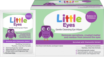 Each box contains 30 sterilised individual wrapped sachets. Little Eyes® Gentle Cleansing Wipes are available at all major pharmacies. Find out more about Little Eyes® Gentle Cleansing Wipes.